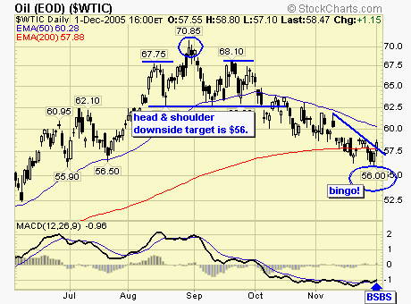 Crude oil - hit our downside target of $56 on the nose, and we have a buy signal.